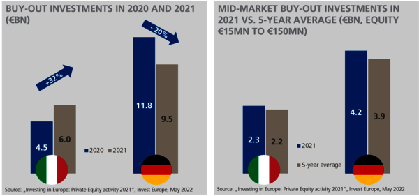 Down in Germany, up in Italy – this in a nutshell describes the statistics on private equity market performance in the two countries. And it holds true not only for 2021, but for the first half of 2022 as well.