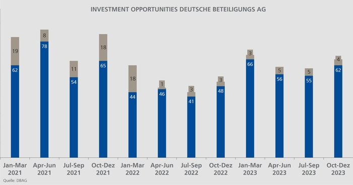 The market is offering attractive opportunities for new equity investments. During the first quarter of the 2023/2024 financial year, we have investigated 66 investment opportunities; this is a significantly higher number than the 51 we looked at in the first quarter of the previous year, and also more than the 60 opportunities examined in the last quarter of the previous financial year. This paves the way for further expansion of our investment portfolio.