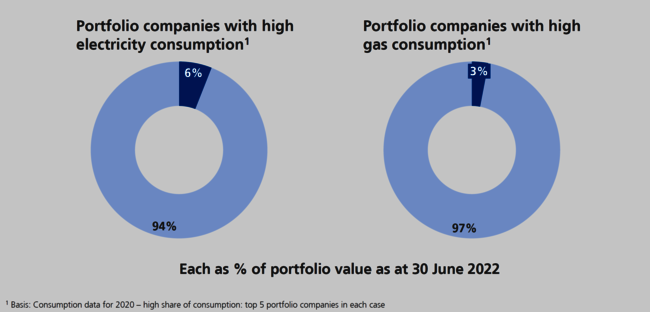 The extreme rise in energy prices is placing the entire German economy under increasing pressure, with energy-intensive industries especially suffering. Inevitably, DBAG’s portfolio companies are by no means immune to these developments – looking at the total portfolio, however, only a handful of investments are significantly affected. This includes two foundries whose production requires particularly high levels of energy. Portfolio companies with very high electricity consumption only accounted for six per cent of DBAG’s aggregate portfolio value as at 30 June 2022; those with heavy gas consumption just three per cent.